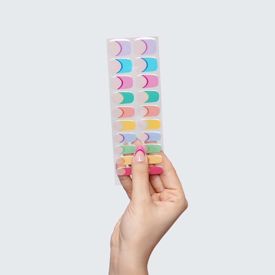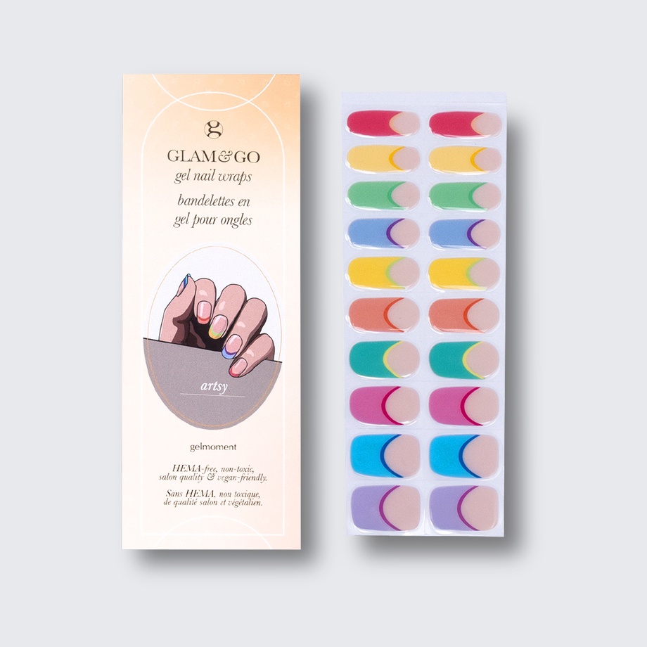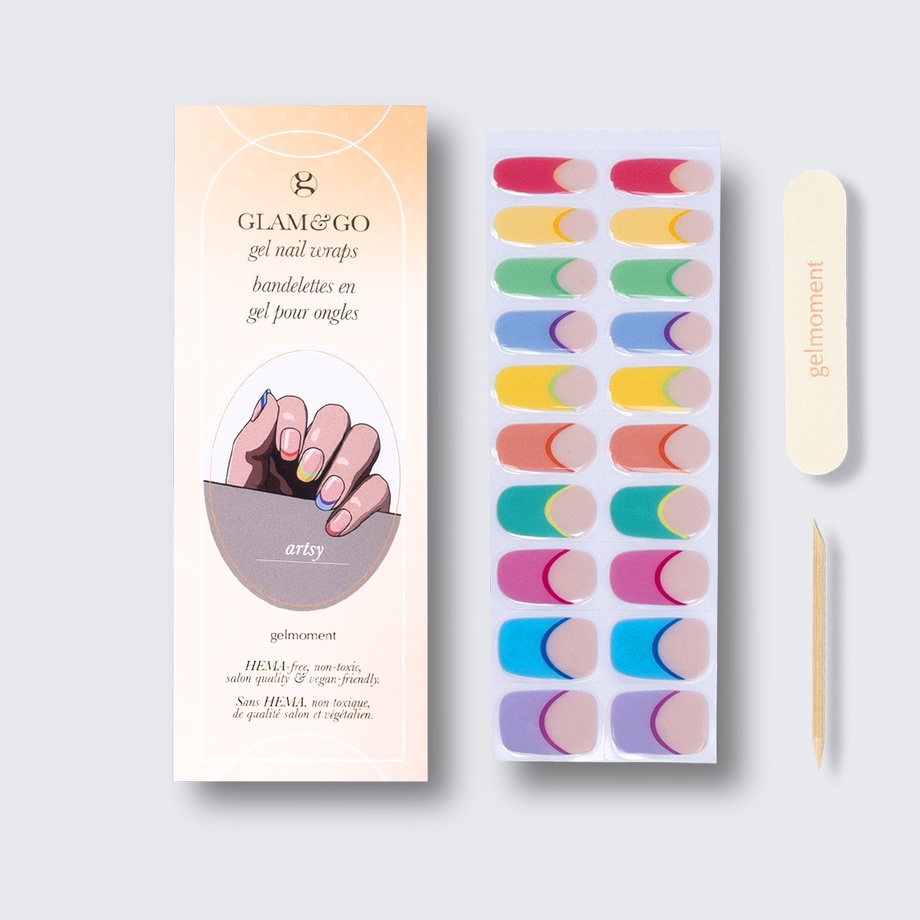 Our GLAM & GO gel nail wraps ensure that no matter how complex your chosen nail design, the application process remains incredibly simple. Our GLAM & GO gel nail wraps require no glue, base coat, or top coat—just peel them off the packaging, apply them to your nail, trim to size, cure twice, and voilà!